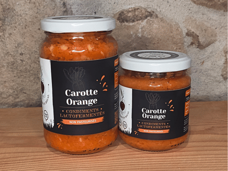 Plongez dans l’univers vibrant de notre Carotte Orange, un condiment lactofermenté artisanal et 100% bio.